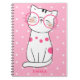 Ce design carnet girly, mignon et moderne présente un dessin animé de chat blanc mignon avec lunettes sur arrière - plan motif pois rose et blanc et a un endroit pour vous d'ajouter votre nom dans une belle typographie. Personnalisez ce produit en ajoutant votre nom au bas . ce sera le design parfait pour tout amoureux des chats de papeterie féline.