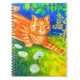 Carnet avec la peinture animalière de Louis Wain Cat Stalking (1860-1939). Un chat rayé orange marche dans un champ vert la nuit. Les fleurs blanches, violettes et rouges sont au premier plan. Un cadeau merveilleux pour l'art amoureux des chats et anglais.