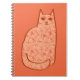 Carnet au design moderne, rétro chat, dans un motif Spoutnik / starburst - corail clair orange avec mandarine profonde et accents blancs, surligné d'orange foncé, sur un arrière - plan corail moyen orange