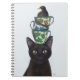 Chat noir avec Teacups et Blackbird par FabFunky. Un chat noir avec des tasses empilées et un oiseau noir au-dessus de la tête. | 191546D