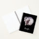 Carnet spirale avec un aquarelle représentant un chat noir et un bouquet floral violet clair et rose. Devant une grande lune. Design et magique.
