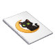 Carnet Chat noir souriant aux yeux verts brillants assis