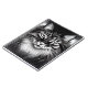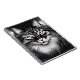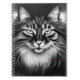 Carnet dans un portrait serré d'un chat norvégien de la Forêt avec ombrage en nuances de gris détaillé, présentant ses motifs de fourrures complexes. L'utilisation de contrastes noirs et blancs pour mettre en évidence le visage du félin.