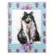 Carnet Chat Tuxedo Chats Noirs et Blancs Fleurs Bleues