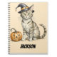 Personnalisé Adorable Carnet Halloween Chat. Carnet de sorcière rétro. Carnet de sorcière de chat. Carnet de chat. Carnet Halloween personnalisable. Carnet des amoureux d'Halloween. Carnet de chat et Jack-O-Lantern.