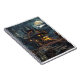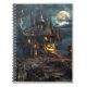 Un château de sorcières tordu avec des lanternes jack-o-lanternes éclairées dans le noir. Le meilleur choix pour Halloween