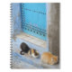 Chats nappés à la porte d'un des célèbres bâtiments bleus de Chefchaouen, Maroc.