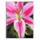 Un beau carnet floral pour des idées inspirantes avec un design original de la peinture aquarelle de Sacha Grossel de fleur de lys de jour rose chaud, brillant et coloré avec feuillage vert foncé. Ce design floral accrocheur est proche, macro style pour les amateurs d'art botanique et de fleurs tropicales partout.