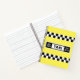 Carnet amusant avec les couleurs et les motifs tristement célèbres des taxis jaunes de New York emblématiques. Les mots TAXI et OFF DUTY sont imprimés à l'avant du carnet, ainsi que des bandes de damier noir et blanc. L'arrière du livre est imprimé avec les bandes de damier sur jaune.