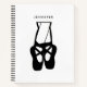 Bloc-notes en spirale avec l'illustration noire d'une danseuse de ballet pantoufles et ses pattes inférieures qui sont transparentes permettant à la couleur de l'arrière - plan de montrer à travers. Ballerina se tient sur ses orteils, en pointe.