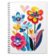 Inspire your daily creativity, organize your thoughts, or brighten up your school desk with this incredibly joyful spiral notebook. The vertical format of the cover is perfectly utilized by a stunning, highly detailed illustration of colorful abstract flowers, rendered in the playful, layered style of modern paper cut-out art. The crisp white background makes the bold, saturated colors absolutely sing, while the subtle drop shadows give the whimsical botanical shapes a cool, realistic 3D depth.