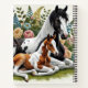 Belle image d'un cheval avec son poulain allongé sur une prairie sereine entourée de fleurs colorées, incarnant un sentiment de paix, de connexion à la nature, et d'harmonie tranquille.