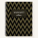 elegant black gold glitter custom name notebook ,chic chevron zigzag faux gold glitter monogram name notebook ,