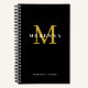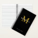 Carnet noir chic avec monogramme personnalisé avec nom en or et blanc. Conservez ou changez la police ou les couleurs arrière - plans à votre favori. Parfait pour les notes importantes, les idées, les plans, les objectifs et plus encore.
