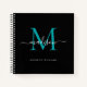 Élégant noir Turquoise vert Monogramme initial moderne Script calligraphie Nom Carnet