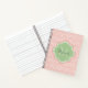 Un carnet de taille standard motif de pétoncle rose clair chic avec un badge vert doux en quatrefoil vous pouvez personnaliser en ajoutant facilement votre propre monogramme et votre nom. Cela fait partie de la collection de printemps du Monogramme vert du Nil des pétoncles Dahlia en fleurs.