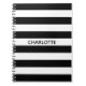 Carnet Chic rayures noir et blanc nom personnalisé monogr