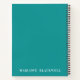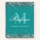 Élégant Monogramme Turquoise Bleu Vert Script Nom carnet parties scintillant argent bordé en fausse parties scintillant argent pour votre nouveau bureau à domicile, travail administratif et professionnel, retour à l'école, esquisses d'oeuvres d'art, notes de recettes etc. Choisissez parmi une variété de types d'insertion, dont une règle large, une règle de collège et un blanc pour l'esquisse.