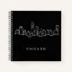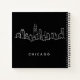 Ce dessin présente un croquis dessiné à la main de la ligne d'horizon de la ville de Chicago sur un arrière - plan sombre.