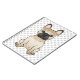 Illustration originale de Destei d'un joli faon avec masque noir couleur French Bulldog / Frenchie race dog qui est assis. L'arrière - plan a un motif d'empreintes de pattes de chien gris.