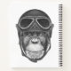 Ce dessin présente le portrait d'un chimpanzé portant un casque et un goggle vintages pour moto.