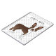 L'illustration originale de Destei d'un mignon chien de race Boston Terrier, couleur chocolat et blanc. L'arrière - plan a un motif d'empreintes de pattes de chien gris. Il y a aussi une zone de texte personnalisable pour un titre.