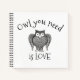 Caricature de croquis de hibou avec corps en forme de coeur et texte personnalisé.