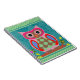Chouette à patchwork de pois mignon multicolores, se tenait sur une branche d'arbre fleurie avec un arrière - plan bleu orné et des bordures de pois verts.