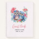 Carnet spiral avec l'image d'une paire de chouettes amoureuses assis ensemble sur une branche d'arbre. Entouré de jolies fleurs bleues, vertes et roses.