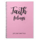 This pink minimalist faith over feelings notebook can be customized with your name of with someone else name if would like to give it as a gift.