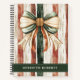 Personalized Christmas Holiday Bow on Rustic Stripes Pattern Notebook... Festive Christmas themed rustic stripes pattern notebook in shades of red, green and gold for holiday gift-giving... or as a colorful notebook journal for yourself. A holiday bow in coordinating colors lets you know this is a special Christmas design. Example text can be easily revised with your own details on the personalization template.