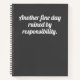 Un carnet drôle et humoristique avec un arrière - plan gris foncé et une typographie blanche moderne et audacieuse qui dit "Encore une belle journée ruinée par la responsabilité". Adulte peut être difficile à certains moments, alors ajoutez un peu d'humour où vous pouvez!