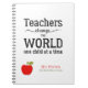 Carnet d'enseignant personnalisé avec pomme rouge et script de typographie inspirante citent "Les enseignants changent le monde un enfant à la fois". Insérez votre nom / texte dans les zones !
