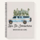 Présentation du devis de voyage sur la route de camping Allons quelque part Carnet. Avec l'illustration aquarelle d'une voiture, d'une forêt et une citation "Allons quelque part". Convient aux amateurs de nature.