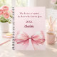 Un arrière - plan rose pâle et doux, décoré d'un grand arc. Citation inspirée et motivationnelle : L'avenir est écrit par ceux qui osent planifier.