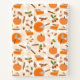 Illustrations manuscrites de tartes citrouilles, citrouilles, bâtons de cannelle et illustrations de feuilles d'automne sur un arrière - plan En vichy plaid. Un beau design parfait pour la décoration d'automne, décoration Thanksgiving et cadeaux. Un design citrouille à tarte mignon avec des tons orange et marron.