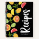 Un livre de recettes personnalisé avec motif d'agrumes avec oranges colorées, citrons, mandarines et pamplemousse.