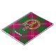 Clan Crawford crête badge entouré d'une sangle et boucle sur l'arrière - plan tartan. Texte personnalisé.