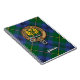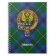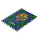 Clan Johnston crête badge entouré d'une sangle et boucle sur l'arrière - plan tartan. Texte personnalisé.
