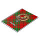Clan MacAulay badge crête entouré d'une sangle et boucle sur l'arrière - plan tartan. Texte personnalisé.
