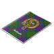 Clan MacDonald badge crête entouré d'une sangle et boucle sur l'arrière - plan tartan. Texte personnalisé.