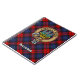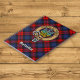 Clan MacLachlan badge de crête entouré d'une sangle et boucle sur l'arrière - plan tartan. Texte personnalisé.