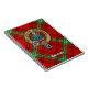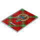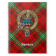 Clan Morrison badge crête entouré d'une courroie et boucle sur l'arrière - plan tartan rouge. Texte personnalisé.