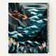 Coastal Energy: This vibrant flat vector illustration captures the dynamic beauty of a rocky beach from an overhead perspective. Dark blue and orange ames life to the scene as waves crash onto the shore, creating a captivating contrast Geometric shapes add depth, while detailed textures on rocks and plants bring a natura natural feel to this stylized artwork. The minimalistic design emphasizes movement and energy, making it a perfect piece for those looking to add bold and modern coastal vibe to their collection.