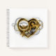 Coeur steampunk mécanique, volumétrique, avec manomètre, acier et or sur arrière - plan blanc. Style Steampunk.