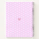 Voici une façon merveilleuse de rendre la rentrée scolaire amusante. Surprenez-la avec ce mignon, chic, simple et moderne cahier à spirale personnalisé avec un nom. Un cupcake rose, doux, scintillant, girly et fantaisiste et une typographie amusante sur un motif de cœurs blancs et un fond rose pastel clair. De petits cœurs roses ornent le dos, sur d'autres cœurs blancs et rose pastel. Personnalisez avec le nom de l'enfant. 8 modèles de papier différents à choisir pour l'intérieur. Fait une déclaration stylée chaque fois qu'elle l'ouvre. Un beau cadeau pour votre fille préférée !
