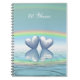 Carnet avec ma conception originale de deux coeurs en platine flottant sur l'eau sous un arc-en-ciel. Le texte personnalisable dit "70 ans".