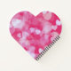Un beau carnet en forme de coeur également recouvert de coeurs roses.