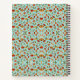 Colorful notebook with a detailed floral pattern on a light blue background. The design includes red, orange, and green elements, creating a vibrant, symmetrical layout.