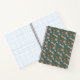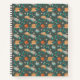 Colorful spiral notebook with a whimsical pattern of foxes, hedgehogs, owls, and rainbows on a teal background, creating a playful and cheerful tone.